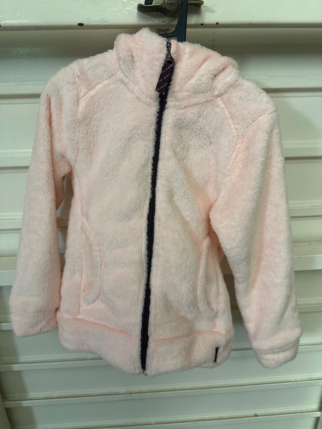 Detalles del productoForro polar rosa de Decathlon para niña de 5 años. Es una prenda suave y cálida, ideal para el frío.