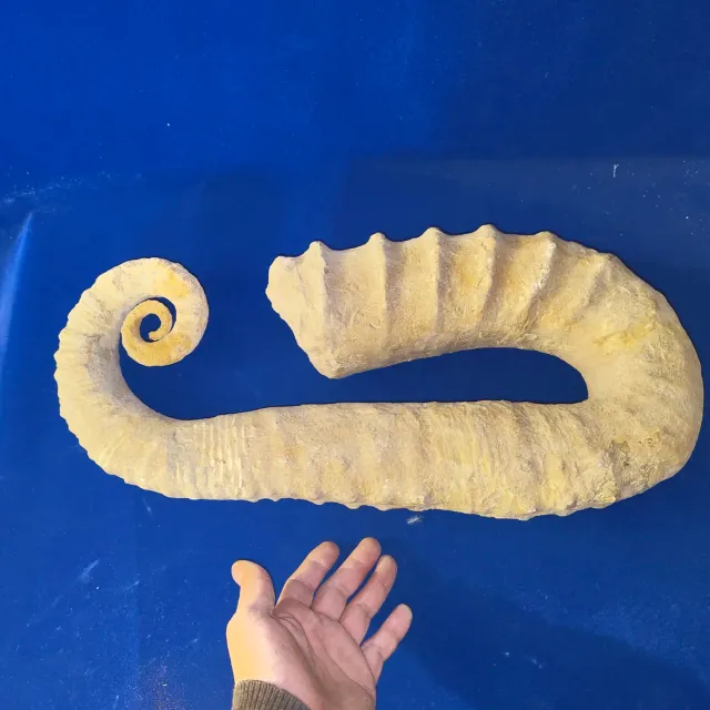 Impresionante fósil de ammonite, una pieza de colección única. - Forma espiral característica. - Textura detallada y visible. - Color crema natural.
