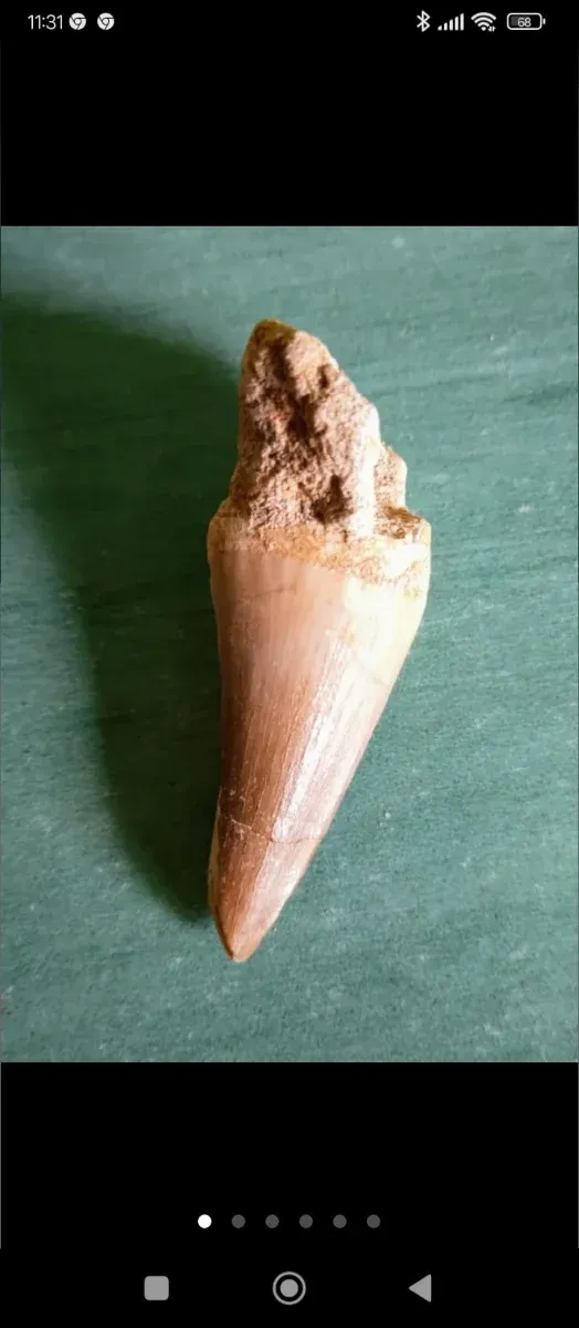 Detalles del productoAuténtico fósil de diente de Tyrannosaurus Rex, con certificado de autenticid Muy buenas piezas dé colección del Jurásico carnivoro estos dientes son muy antiguos tienen líneas de aspecto agrietado mide 100mmx65mm de circunferencia ahora muy Rebajado por 85e