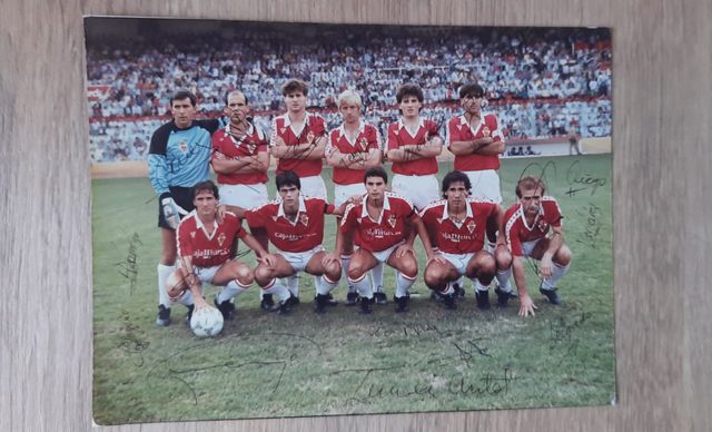 Detalles del productoFoto original del Real Murcia firmada por todo el equipo. Es de la temporada 1986/1987, un bonito recuerdo de esta gran plantilla, con figuras como Amador, Tendillo, Manolo, Mejías... Tamaño 15 x 20 cm. 30 euros.