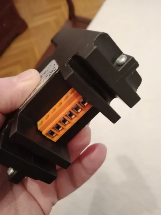 Componente electrónico con conector naranja. - Carcasa negra. - Conector de 6 pines.