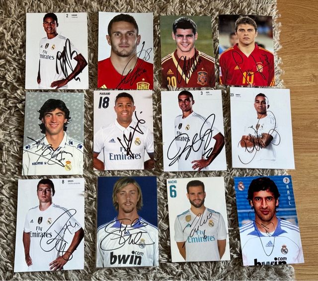 Detalles del productoAutógrafos de varios jugadores y exjugadores del real madrid y selección española de futbol: Varane, Koke, Morata, Joaquín, Nacho, Danilo, Raúl González, Mariano, Kroos, Amavisca, Pepe, Guti, Valerón, Santi Cazorla, Torres, Marchena, Marcelo, Iñaki Williams y Gayá. Firmas conseguidas en persona. Aprox 10x15 cms. Escucho ofertas