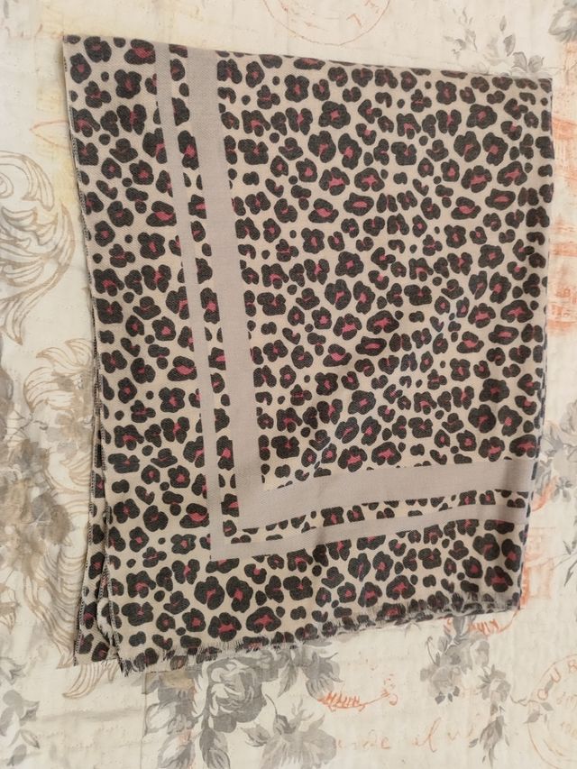 Foulard estampado mujer beige y rosa
