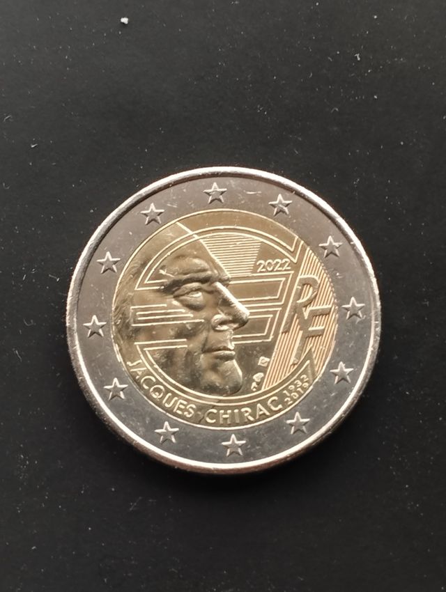 Moneda conmemorativa de 2 euros de Francia del año 2022. - Diseño dedicado a Jacques Chirac. - Año de emisión: 2022. - Denominación: 2 euros.