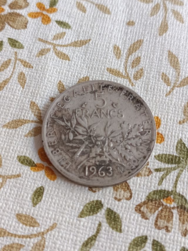 Moneda francesa de plata de 835 de 5 francos 1963 de la Quinta Republica francesa