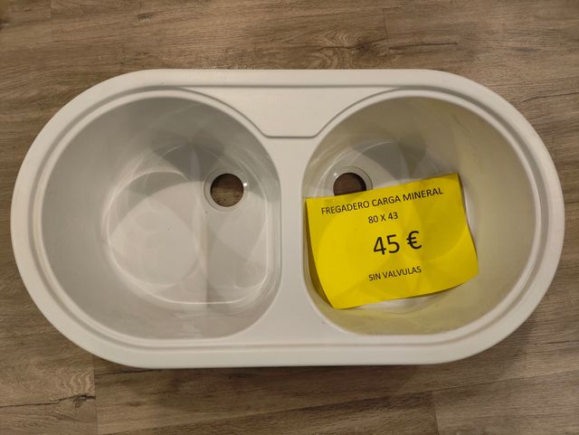 Fregadero Gabbiano 2 senos de carga mineral color blanco. Nuevo. Sin válvulas.