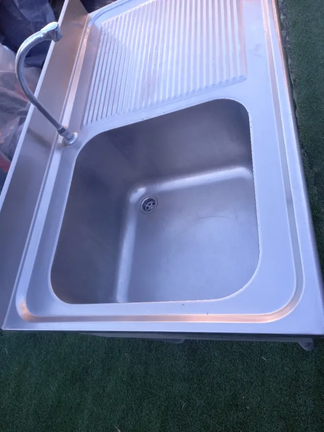 Fregadero de acero inoxidable con escurridor. - Material: Acero inoxidable. - Diseño con cubeta y escurridor. - Grifo incluido.