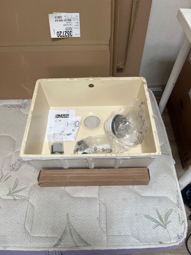 Fregadero de cerámica en color beige. Incluye accesorios. - Material: Cerámica. - Color: Beige. - Accesorios incluidos.