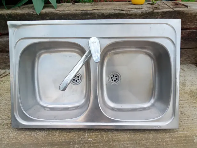 Fregadero de acero inoxidable con dos cubetas. - Fabricado en acero inoxidable. - Diseño de doble seno. - Grifo y sifon incluidos.