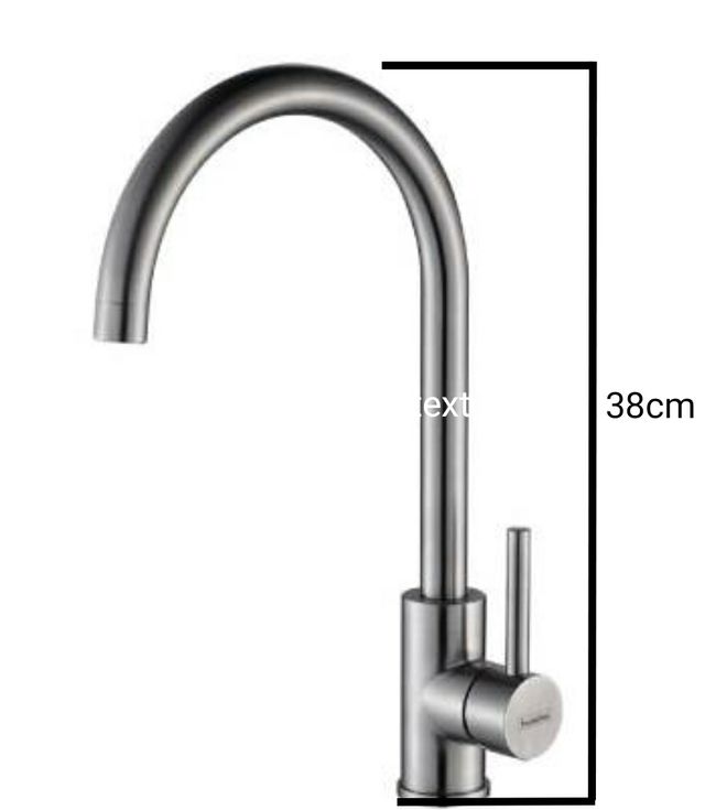 Grifo de cocina de acero inoxidable mate, con altura de 38cm. Nuevo a estrenar.
