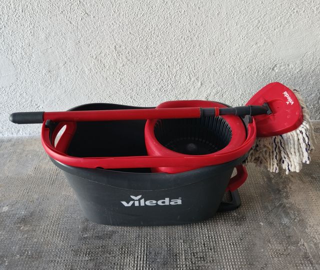 Vendo fregona Vileda con cubo y escurridor. Usado solo dos veces. - Incluye cubo y mopa. - Color rojo y negro. - Marca Vileda.