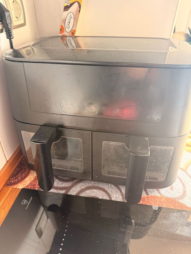 Detalles del productoFreidora de aire con dos cestas independientes, ideal para familias. Su diseño permite cocinar dos alimentos a la vez.