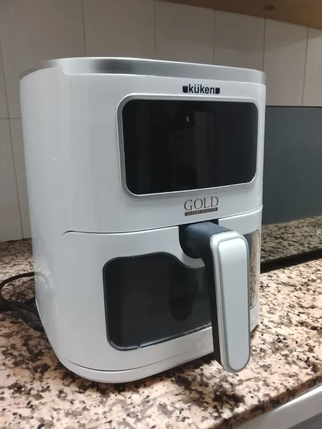 Freidora de aire marca Küken, modelo Gold. - 6 programas - 5L capacidad. - 1500W de potencia - Diseño moderno en color blanco.