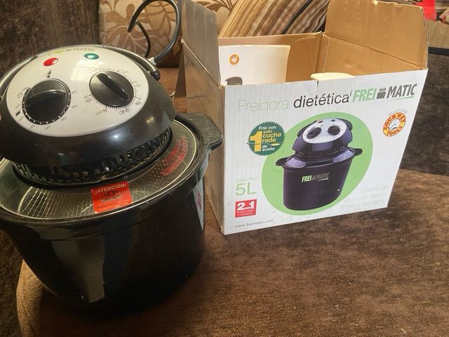 Detalles del productofreidora de aire freimatic nueva, sin uso, en la caja y la parte de la freidora es de cerámica y tiene su reja aparte se puede cocinar muchas cosas en poco tiempo y sin ensuciar y con muy poco aceite