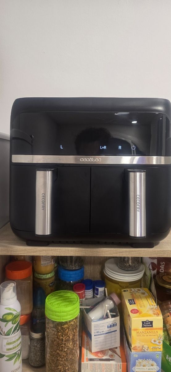 Freidora de aire cecotec con dos cajones. Casi a estrenar porque sólo se usó en una ocasión.
