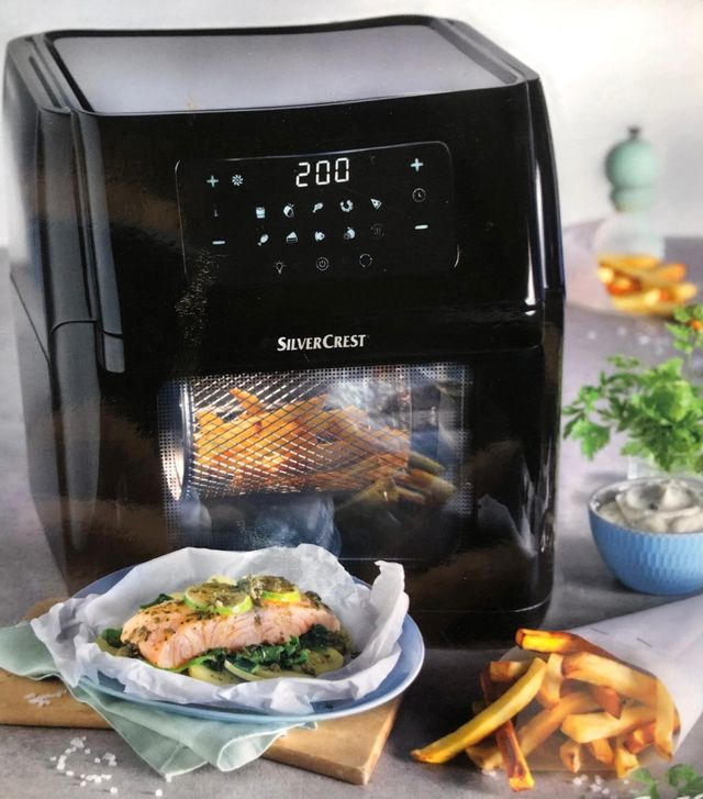 Freidora de aire caliente nueva a estrenar. 3 bandejas Biombo para patatas,verduras etc Palo y pincho para asar carne Pinchos para pinchitos