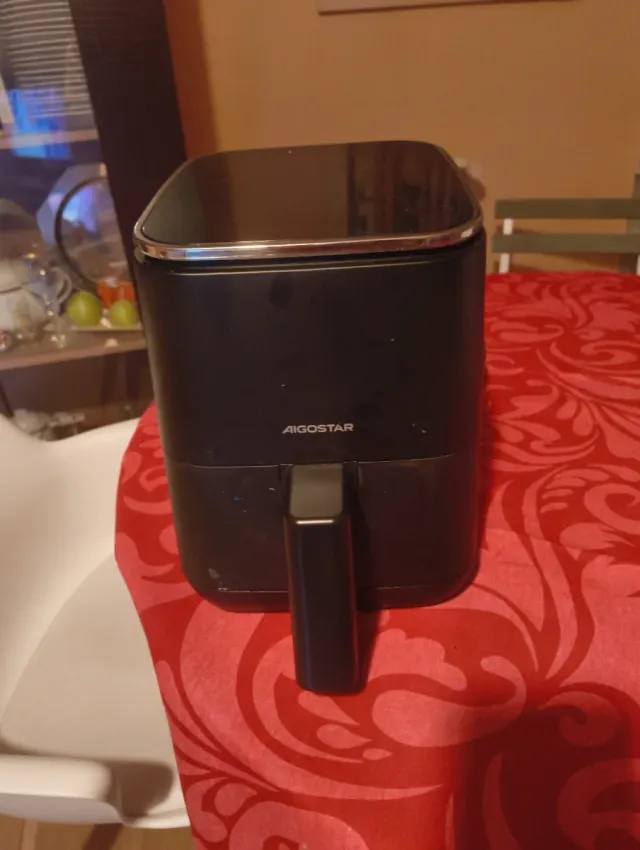 Detalles del productoFreidora de aire de la marca Aigostar en color negro. Su diseño es moderno y compacto.