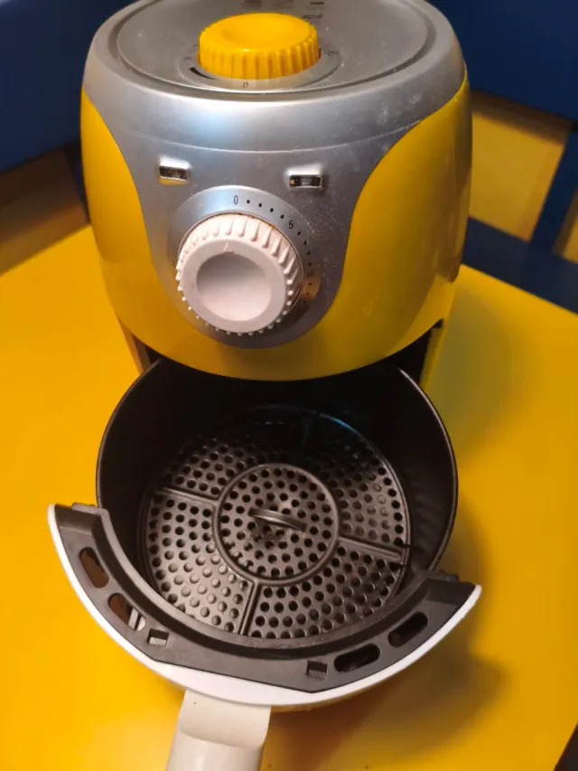 Detalles del productoFreidora de aire Ariete en color amarillo y plateado. Cuenta con un diseño moderno y compacto.