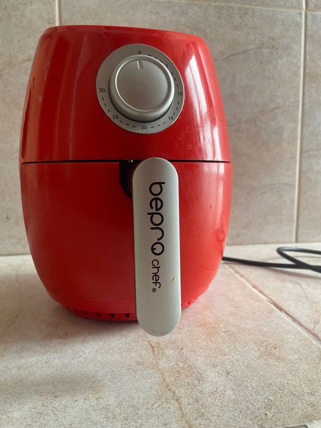Detalles del productoFreidora de aire BePro Chef, roja y en buen estado. Es compacta y fácil de usar.