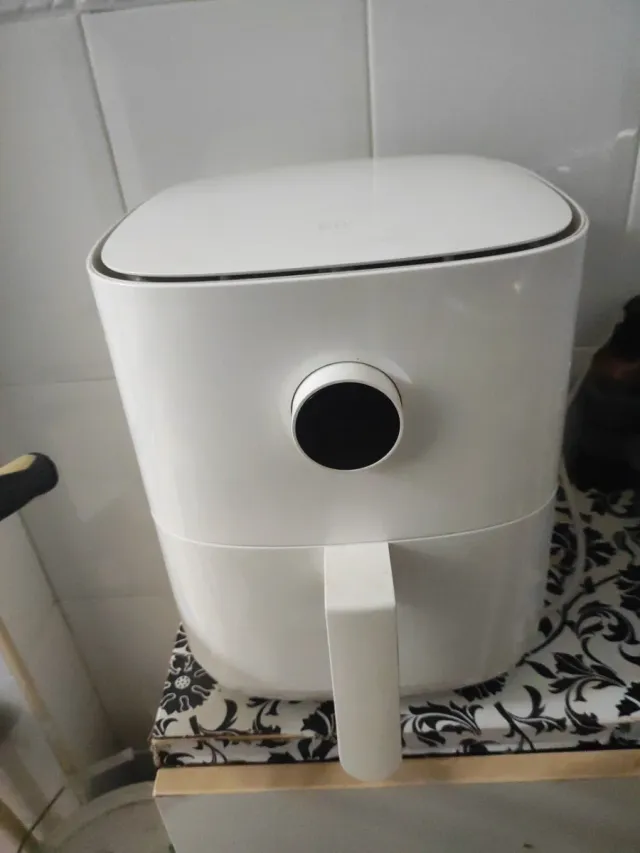 Freidora de aire en color blanco, con un diseño moderno y compacto. - Panel frontal con dial. - Asa extraíble para el cajón. - Se vende por no usarla.