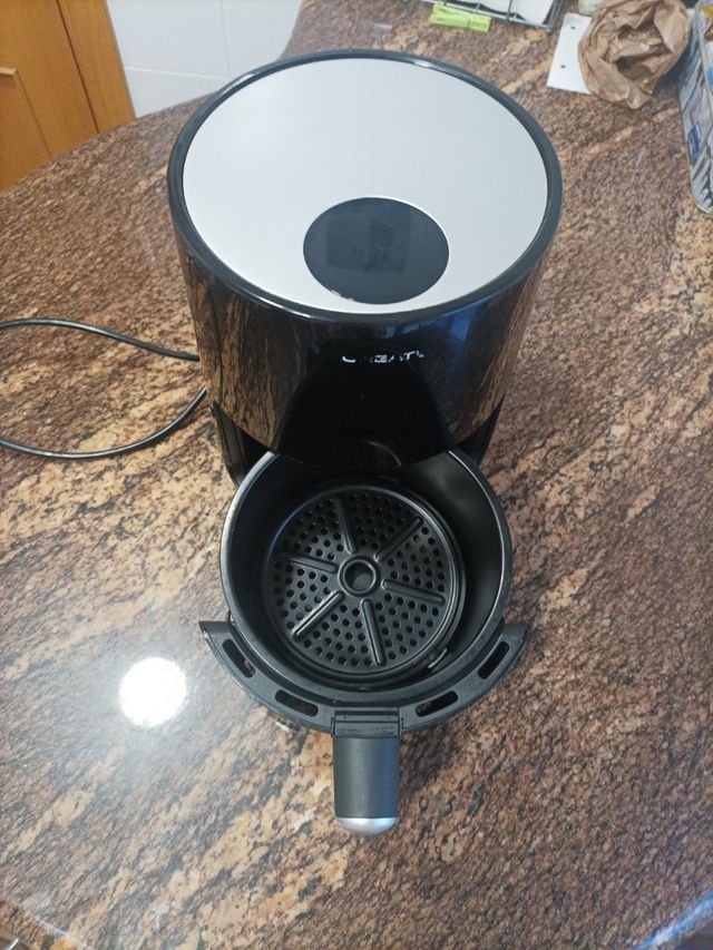 Detalles del productoFreidora de aire caliente que te permite freír sin aceite obteniendo un resultado igual de crujiente de forma limpia, sana y sin humos. Puedes usarla para hornear. Compacta y práctica, con capacidad para unas 2 raciones, viene con una pantalla LCD para controlar la temperatura y tiempo de cocción Medidas del producto