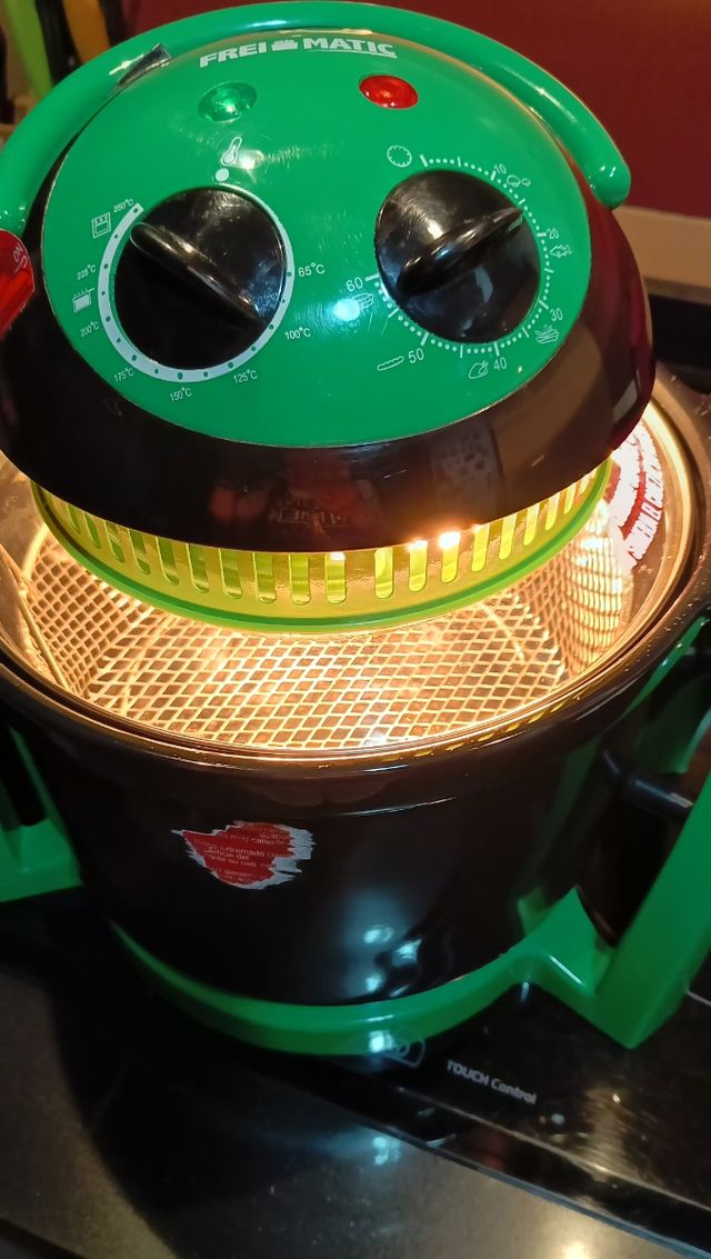 Detalles del productoFreidora de aire Frei-Matic en color verde y negro. Ideal para cocinar de forma saludable.