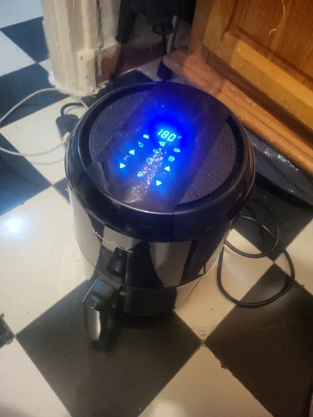 Freidora de aire en color negro. - Panel de control digital. - Temperatura ajustable a 180 grados.