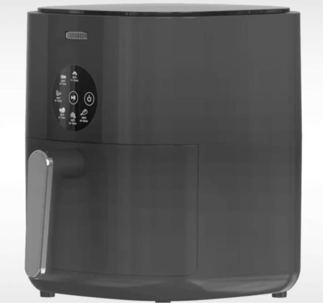 Detalles del productoFreidora de aire en color negro, con panel de control digital y asa extraíble.