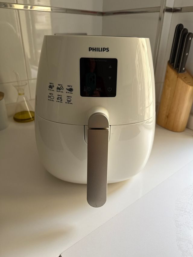 Freidora de aire Philips en color blanco. Un electrodoméstico versátil para cocinar de forma saludable. - Diseño moderno y compacto. - Panel de control digital.