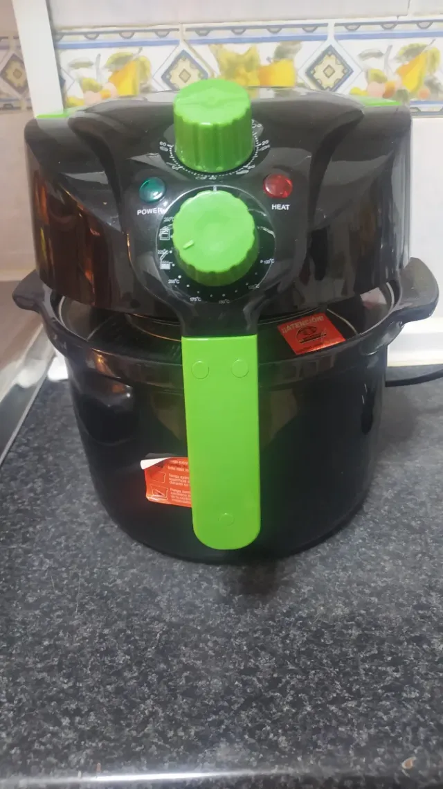 Freidora de aire en perfecto estado, sin ningún uso. - Color negro y verde. - Incluye cesta extraíble.