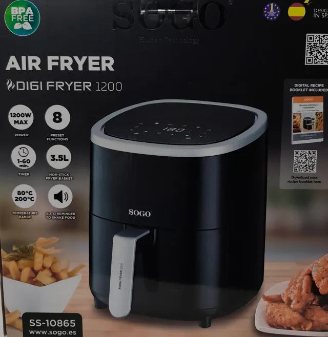 Detalles del productoFreidora de aire SOGO Digi Fryer 1200, con capacidad de 3.5L. El paquete está sin abrir.