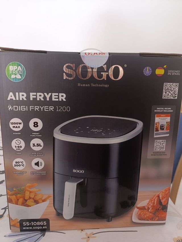 Detalles del productoFreidora de aire SOGO Digi Fryer con gran capacidad de 3.5 litros y 1200W de potencia. Ideal para preparar tus comidas favoritas de forma saludable., sin estrenar, sin sacarla de su embalaje.