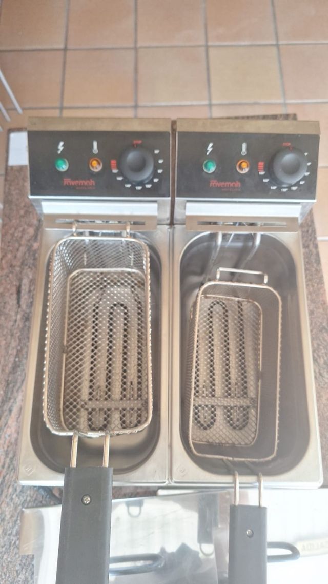 Detalles del productoFreidora doble Ravemah en buen estado. Ideal para negocio de hostelería o uso doméstico intensivo.35x42 cm anchoy 30 cm de alto