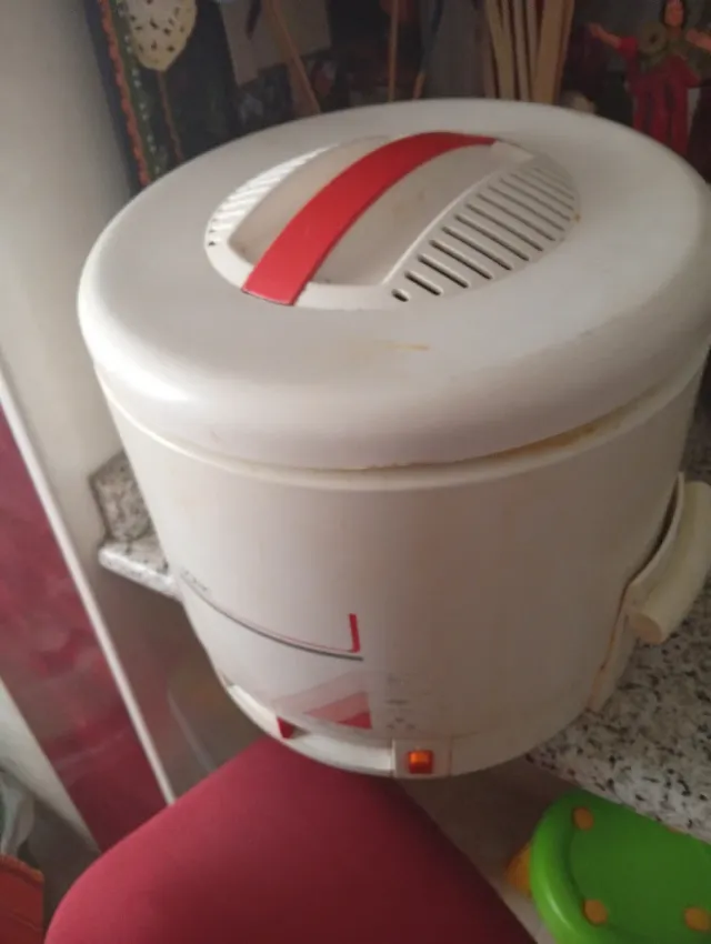 Detalles del productoFreidora eléctrica de color blanco, ideal para preparar tus comidas favoritas.