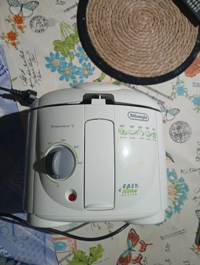 Detalles del productoFreidora eléctrica DeLonghi en color blanco, modelo Easy Clean System. Permite ajustar la temperatura.