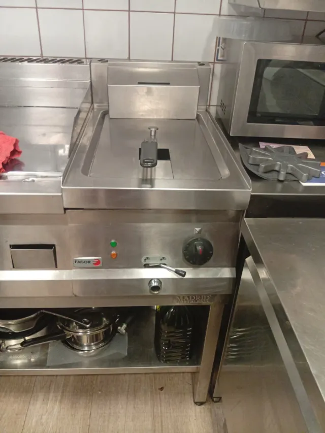 Freidora industrial de la marca Fagor. - Fabricada en acero inoxidable. - Encimera lisa. - Control de temperatura.