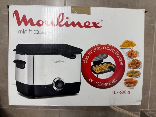 Detalles del productoFreidora Moulinex modelo Minifrito, con capacidad de 1 litro y 600 gramos. Ideal para 1 o 2 personas.