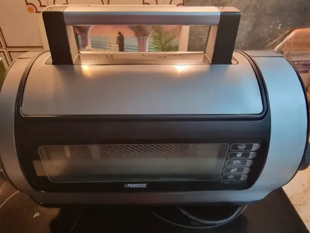 Detalles del productoFreidora de aire caliente de la marca Princess. Permite cocinar alimentos de forma saludable sin necesidad de aceite.