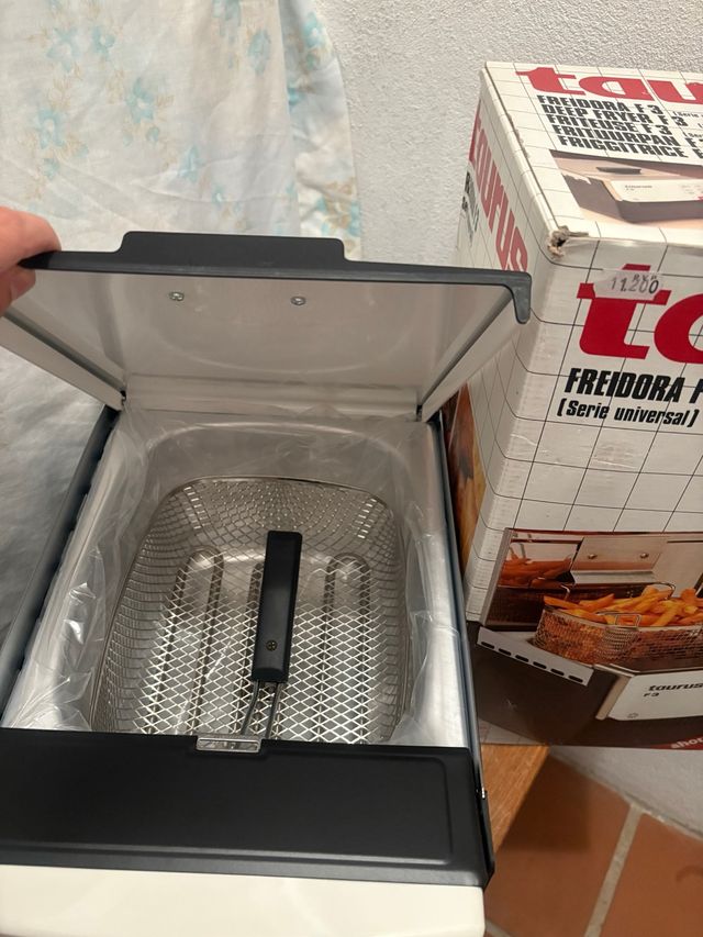 Freidora eléctrica Taurus F3, modelo Serie universal. - Cesta de freír metálica con asa. - Interior recubierto de plástico protector.