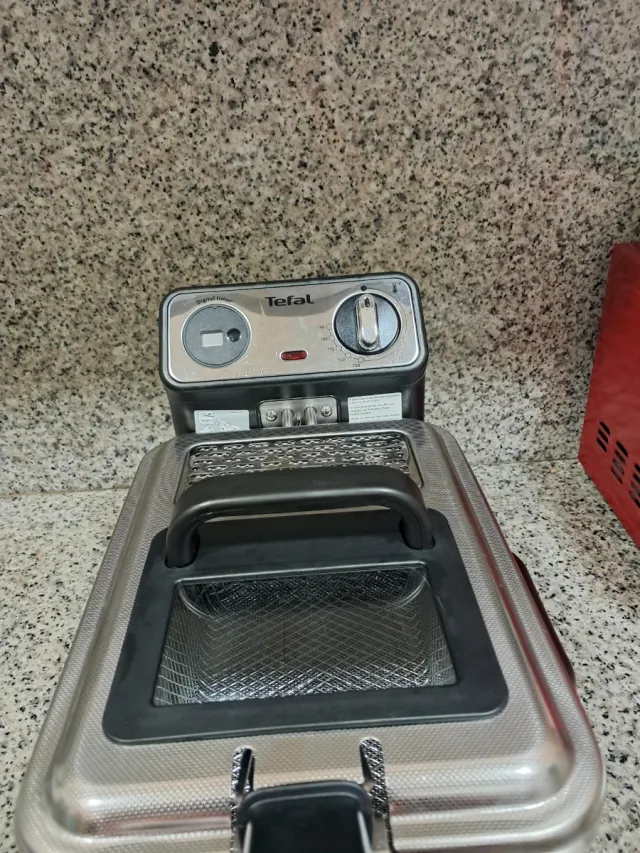 Detalles del productoFreidora de aceite de la marca Tefal. Cuenta con un diseño moderno y práctico.