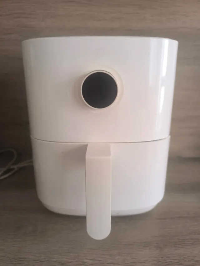 Detalles del productoFreidora de aire Xiaomi en color blanco. Cuenta con un panel digital para ajustar la temperatura.