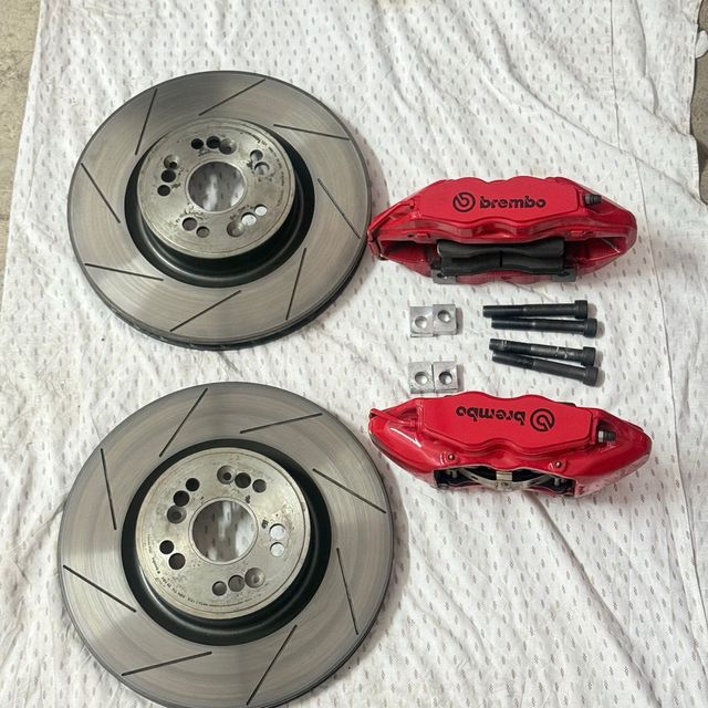 1. Dos pinzas Brembo de Megane 4 RS(pistón de 42mm más grande que Megane 3 RS), con su pasadores y chapa nuevas.