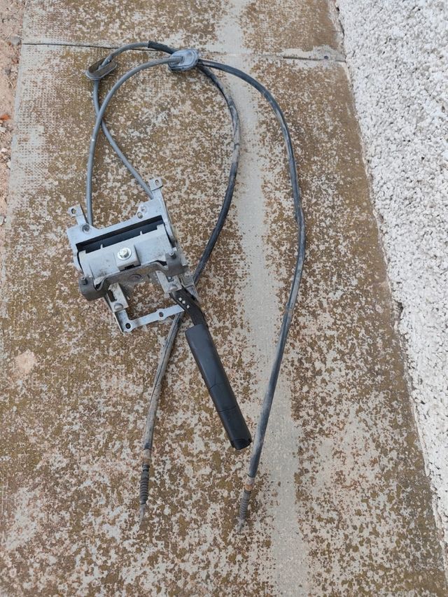 Conjunto de freno de mano con sus cables. - Mecanismo de freno de mano. - Cables de accionamiento.