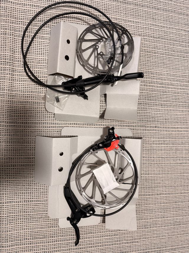 totalmente nuevos! desmontados de bici nueva. Pinza delantera 4 pistones pinza trasera flat mount de 2 pistones. discos centerline de 6 tornillos (incluidos)