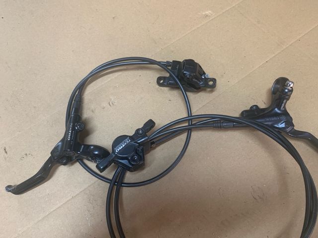 Juego de frenos Tektro Auriga. - Frenos de disco hidráulicos. - Manetas de freno. - Pinzas de freno.
