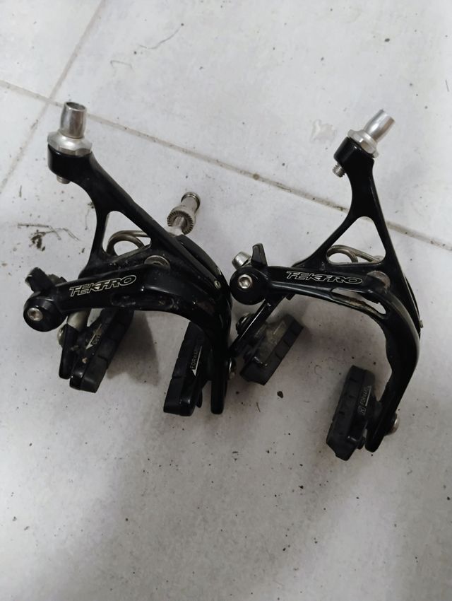 Par de frenos Tektro R741 para bicicleta. En buen estado, zapatas con mucho uso por delante - Diseño en color negro. - Incluye zapatas de freno.