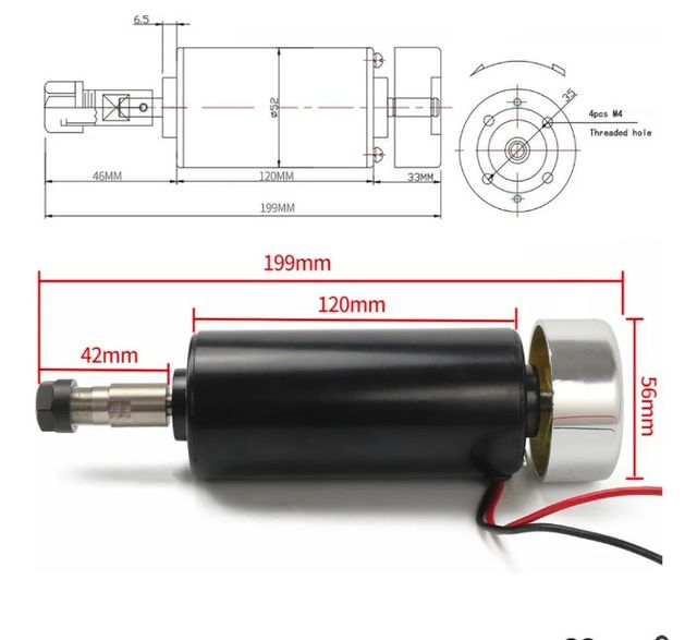 - Eje con una longitud de 46mm.