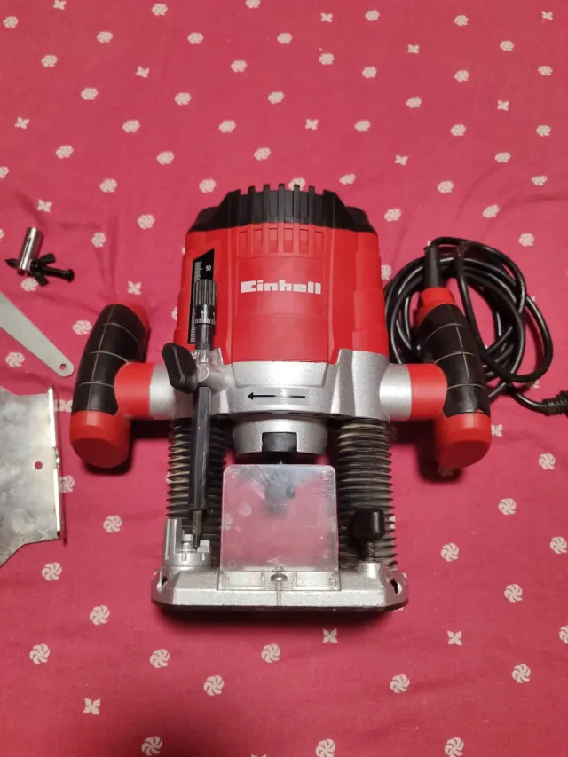 Detalles del productoFresadora Einhell en color rojo y negro. Ideal para trabajos de carpintería y bricolaje.