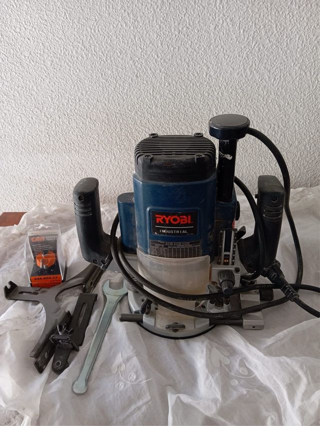 Fresadora Ryobi Industrial con accesorios. - Incluye fresadora. - Incluye llave. - Incluye accesorios de montaje. - Incluye juego de brocas CMT.
