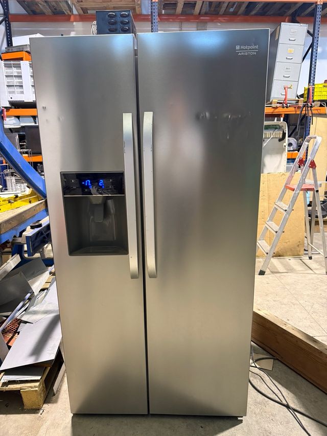 Vendo frigorífico americano marca horpoint ariston, con fabricador de hielo y dispensador de agua fria, el frigorífico tiene una reparación hecha y el condensador se ha puesto en la parte de arriba del frigorífico, el ventilador esta siempre funcionando, por lo demas el frigorífico funciona perfectamente, de ahi su precio, funcionando perfectamente.